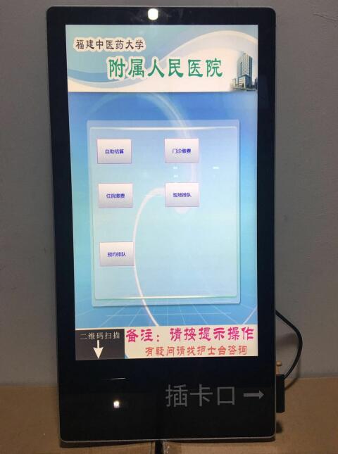 智能交互终端一体机包含:主控系统、二维码识别器、二代身份证阅读器、IC卡读卡器(医保读卡器)、